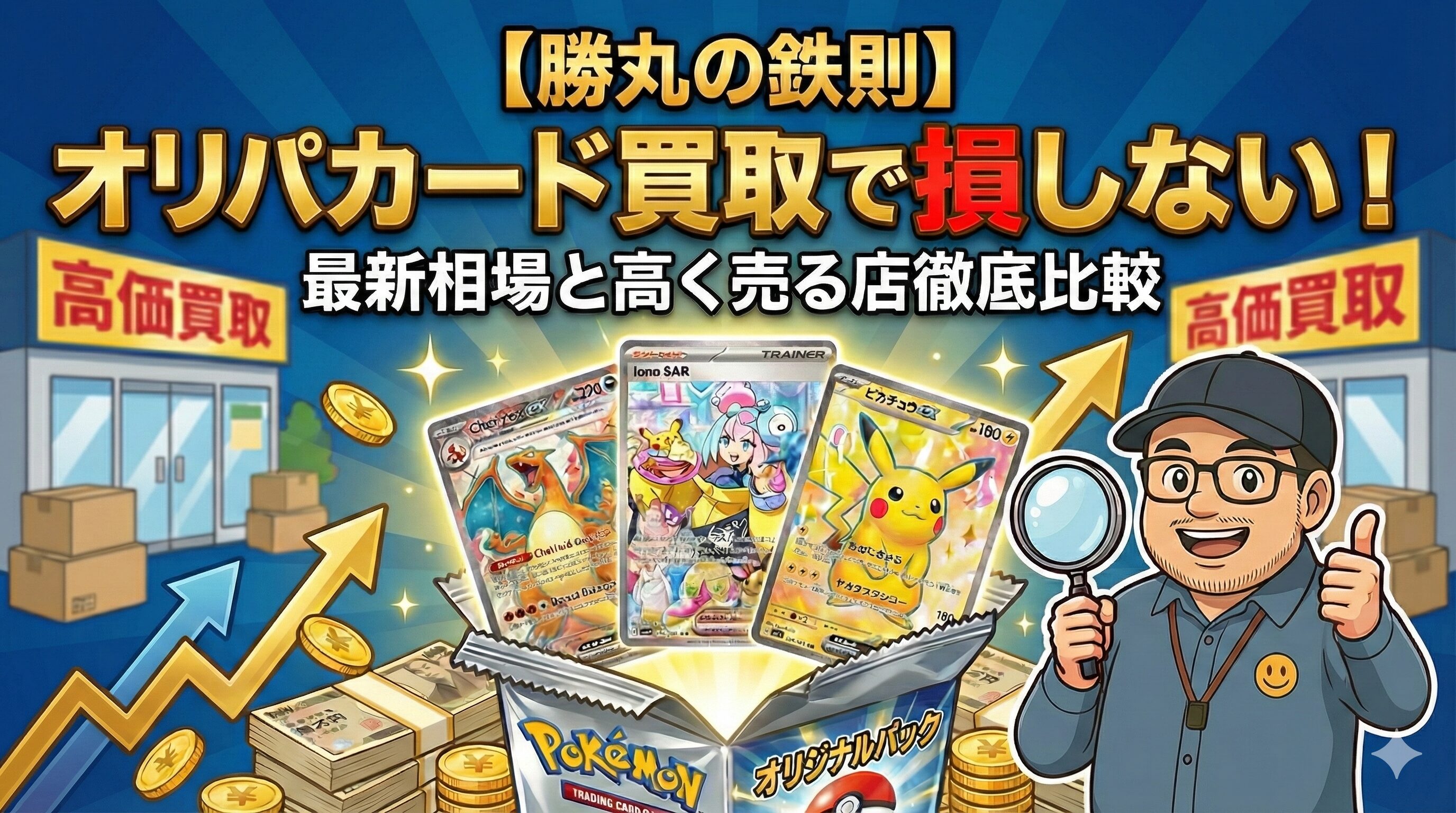 この記事では、ポケカコレクター歴20年以上、普通のサラリーマンながらオリパ研究に情熱を注ぐ私、勝丸が、あなたの手元にある大切なカードを “1円でも高く、安心して” 売るための全ノウハウを公開します。私が実際に何度も試し、失敗と成功を繰り返して辿り着いた 実体験に基づく買取店比較 は必見です。